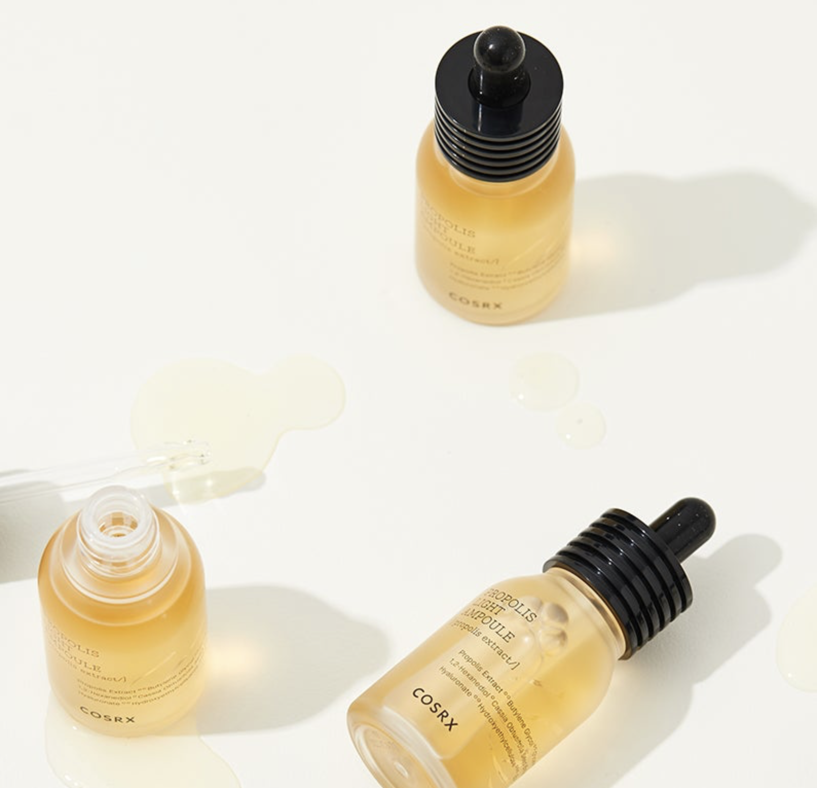 Die COSRX Propolis Light Ampoule ist mit über 83% Propolis-Extrakt angereichert, einem Power-Wirkstoff mit außergewöhnlichen Kräften aus der Natur. Propolis verfügt sowohl über antibakterielle, als auch entzündungshemmende und regenerierende Eigenschaften, die gestresste Haut schnell beruhigen und sie mit einer Extraportion Feuchtigkeit versorgen. Enthaltenes Betain und Gylcerin schützen vor dem Austrocknen der Haut, erhöhen die Hautelastizität und halten sie geschmeidig . Die Ampulle hat eine erfrischende leichte Textur, zieht wunderbar schnell ein und hinterlässt ein glattes, samtweiches Hautgefühl.