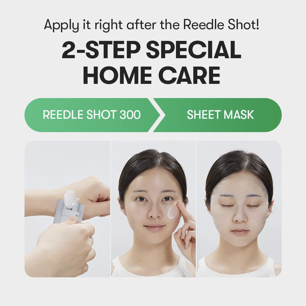 Schritt 1: Reedle Shot 300 Essenz: Diese Essenz bereitet die Haut mit CICAHYALON™ vor – einer Kombination aus Centella Asiatica und Hyaluronsäure – die die Aufnahme von Wirkstoffen verbessert und gleichzeitig beruhigende Feuchtigkeit spendet. Die Cica Reedle™-Technologie simuliert die Wirkung eines Microneedlings, wodurch niedrigmolekulare Inhaltsstoffe tiefer eindringen können.